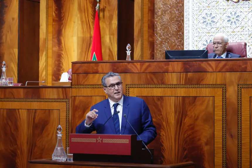 قال رئيس الحكومة عزيز أخنوش اليوم في جلسة عامة لمجلس النواب إن حكومته اختارت مواجهة سنوات الجفاف ونقص الموارد المائية من خلال حلول مبتكرة، في مقدمتها تحلية مياه البحر كخيار استراتيجي لتعزيز الأمن المائي وضمان تزويد البلاد بالماء الصالح للشرب ومياه الري. كما أشار إلى أن القدرة الإنتاجية للمياه المحلاة ارتفعت من نحو 46 مليون متر مكعب في 2021 إلى أكثر من 415 مليون متر مكعب في 2026، وهو ما يعكس حجم الاستثمار في هذا الورش الاستراتيجي.
