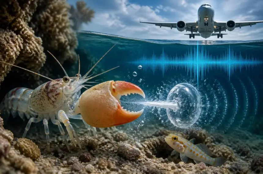 أفادت دراسة حديثة نشرتها مجلة Science بأن الروبيان الطقاق، المعروف أيضاً بالروبيان المسدسي وينتمي إلى فصيلة Alpheidae، يُعد من أقوى الكائنات البحرية في إصدار الصوت رغم أن طوله لا يتجاوز بضعة سنتيمترات. يعيش هذا النوع في بيئات بحرية دافئة وضحلة، خاصة قرب الشعاب المرجانية والمناطق الرملية. وتوضح الدراسة أن الصوت لا ينبعث من اصطدام المخلبين مباشرة، وإنما من إغلاق سريع للمخلب الكبير غير المتماثل يؤدي إلى قذف تيار مائي قوي وتكوين فقاعة تكهّف ثم انهيارها العنيف خلال جزء من الثانية. كما بينت القياسات أن شدة الصوت قد تبلغ نحو 210 ديسيبل تحت الماء.