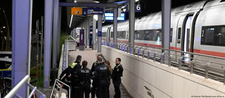 اعتقال مشتبه به بعد تهديده بهجوم داخل قطار ألماني سريع من آخن إلى فرانكفورت؛ أصيب 12 وأُجلِي 180 راكباً، والتحقيق في الدوافع والتسلسل.
