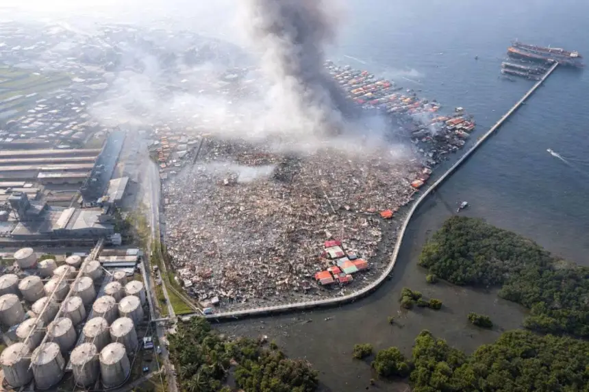 حريق هائل يدمّر قرية ساحلية في سانداكان بماليزيا